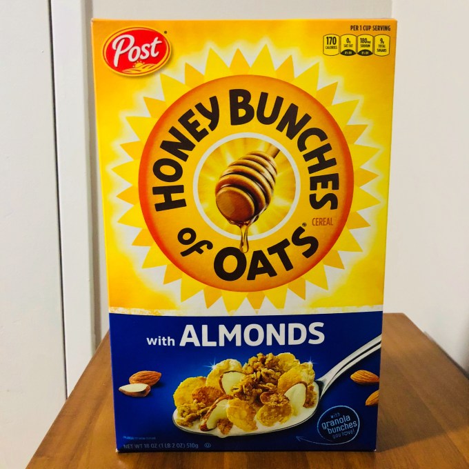 Frank occasionally brings cereal home from the grocery store, though. As a child, he preferred Cocoa Pebbles and Apple Jacks. But, to paraphrase the Apostle Paul, when Frank became a man he put away childish things and switched to Honey Bunches of Oats with Almonds.