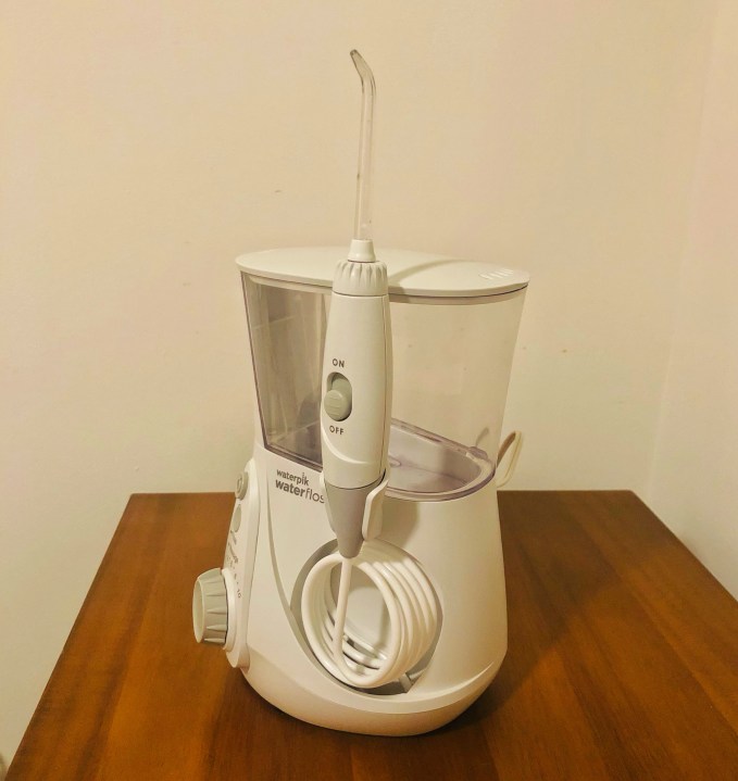 To create the illusion of providing a useful course of action while the insurance company mulls things over, the periodontist advised me to purchase a Waterpik. It’s a device with a wand for squirting a high-pressure stream of water between your teeth and, in my experience, down the front of your shirt.